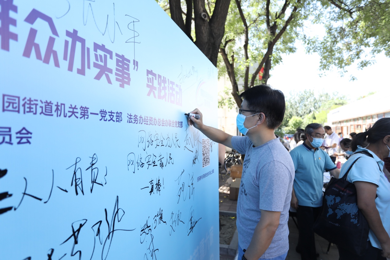 本次活动由mk手机注册宣传部文化办联合党支部、信息办党支部、清华园街道机关第一党支部、学生社区中心办公室党支部、法务办经资办总会办联合党支部、中共北京市盈科律师事务所委员会第八支部委员会共同举办,超过50名党员现场参加,面对面服务师生及居民约600人次。结合学校网络安全宣传周相关活动,上述党支部积极落实“我为群众办实事”要求,通过多种方式向师生与居民普及网络安全知识,提升网络安全意识和技能,营造共筑网络安全防线的浓厚氛围。