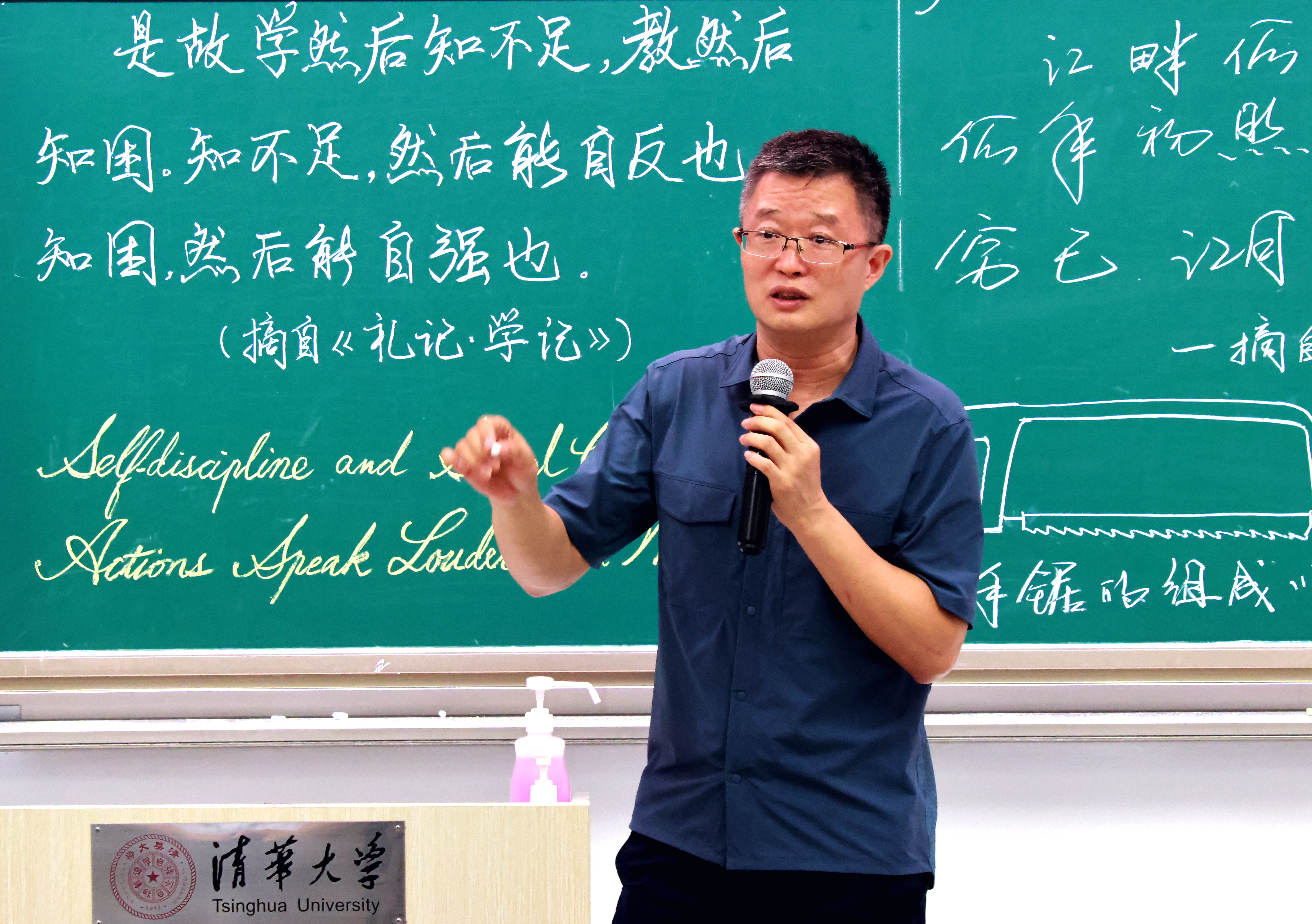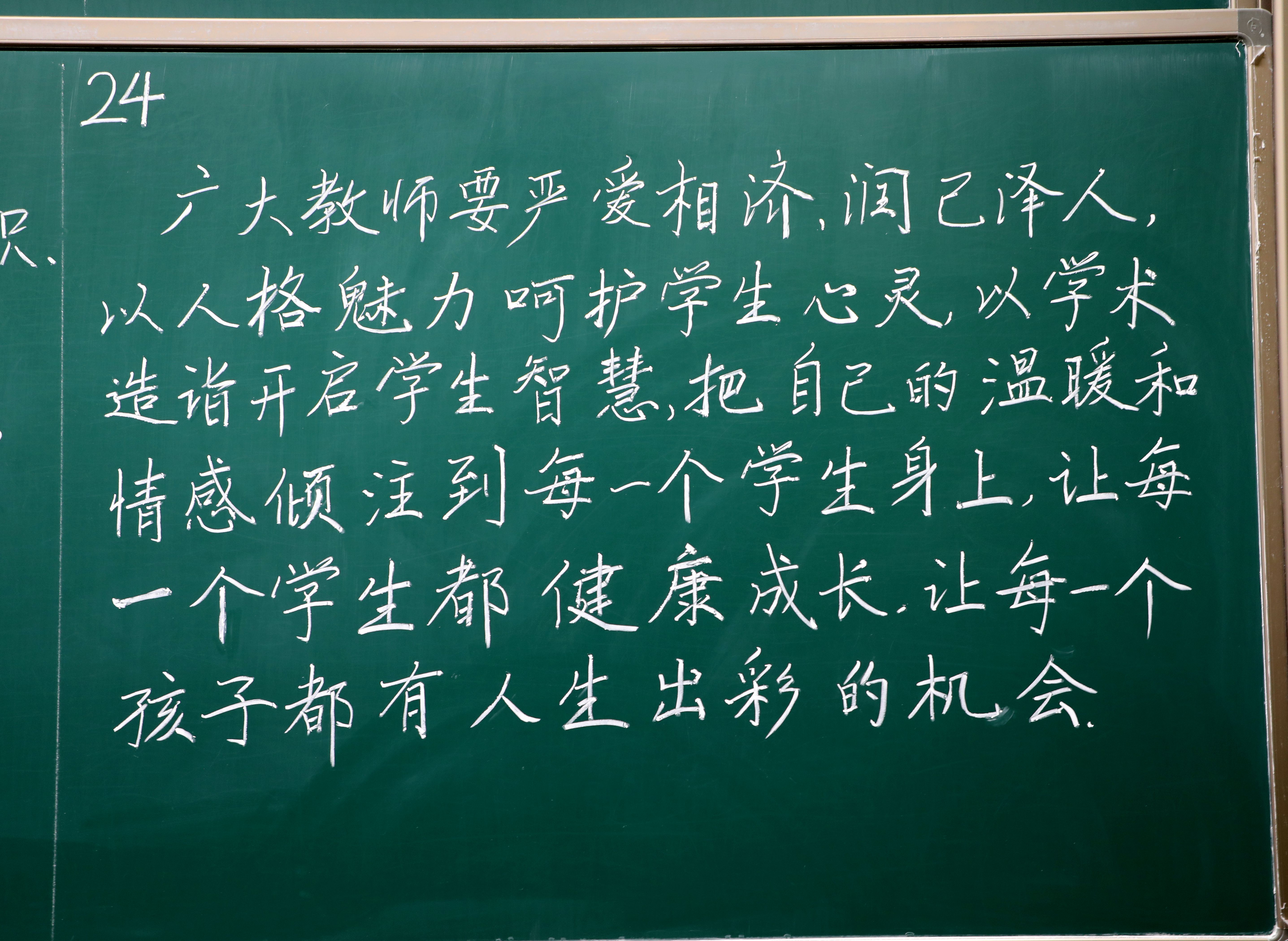 杜鹏飞在发言中表示,教职工粉笔板书比赛于2017年起举办,主要宗旨要突出书法的实用性、展示板书艺术性的重要作用。板书书写不仅传递了知识,也承载着中国文字特有的美。如果教师能够在日常教学中,能够关注一点,自觉提升一点,日积月累,做到板书整齐、规范、有美感,可以提升我们学子对于文字之美的认知。