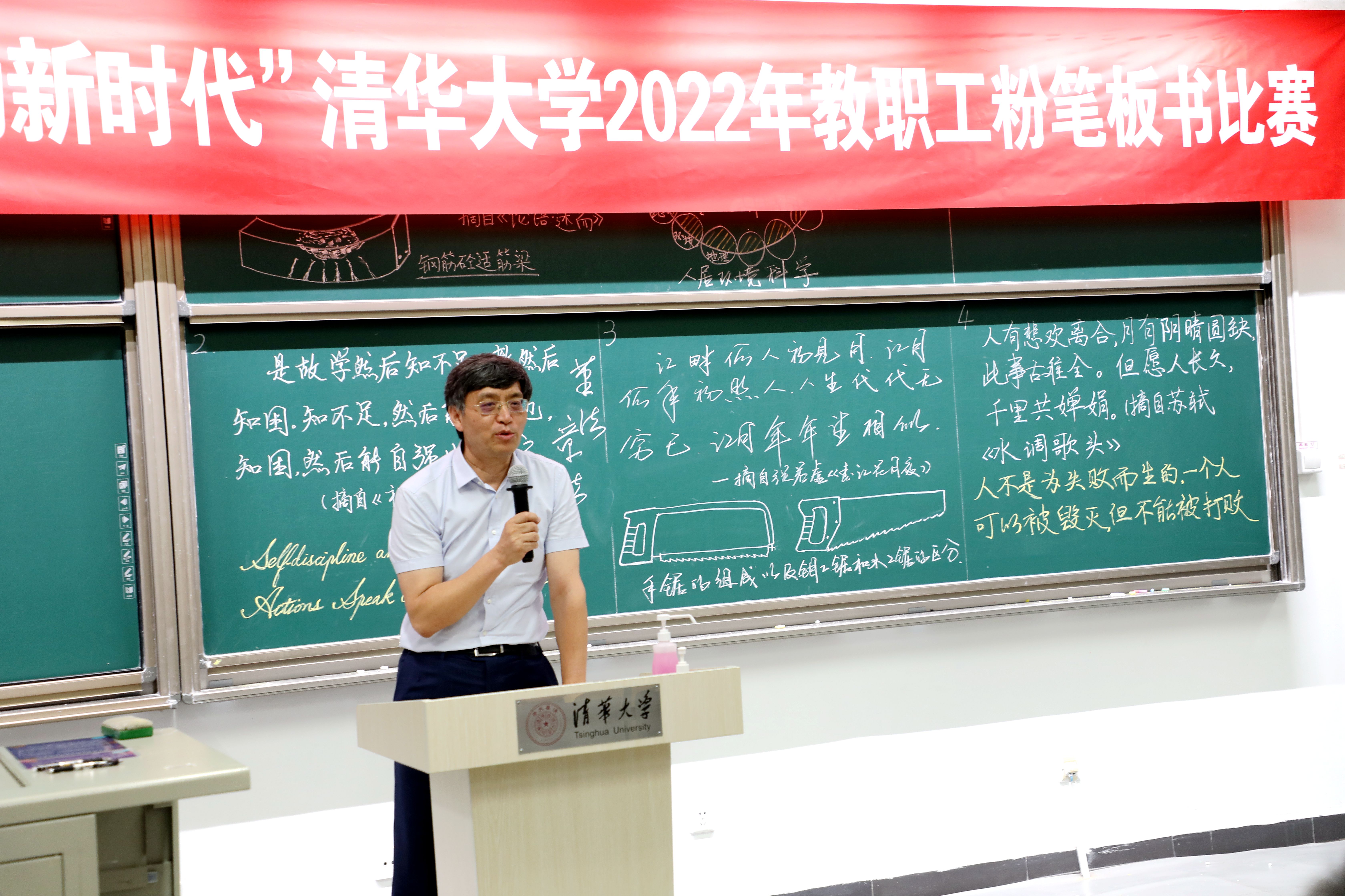 王岩在致辞中对积极参与粉笔板书比赛的老师们和为此次比赛辛勤付出的评委老师及工作人员表示衷心感谢。他表示,立德树人是学校的根本任务,上课也是教师的首要学术责任。上好一门课不仅要注重课堂的内容,也强调课堂板书的艺术性和教师的思想引领作用,老师们精彩的课堂呈现对学生全面发展具有重要意义。