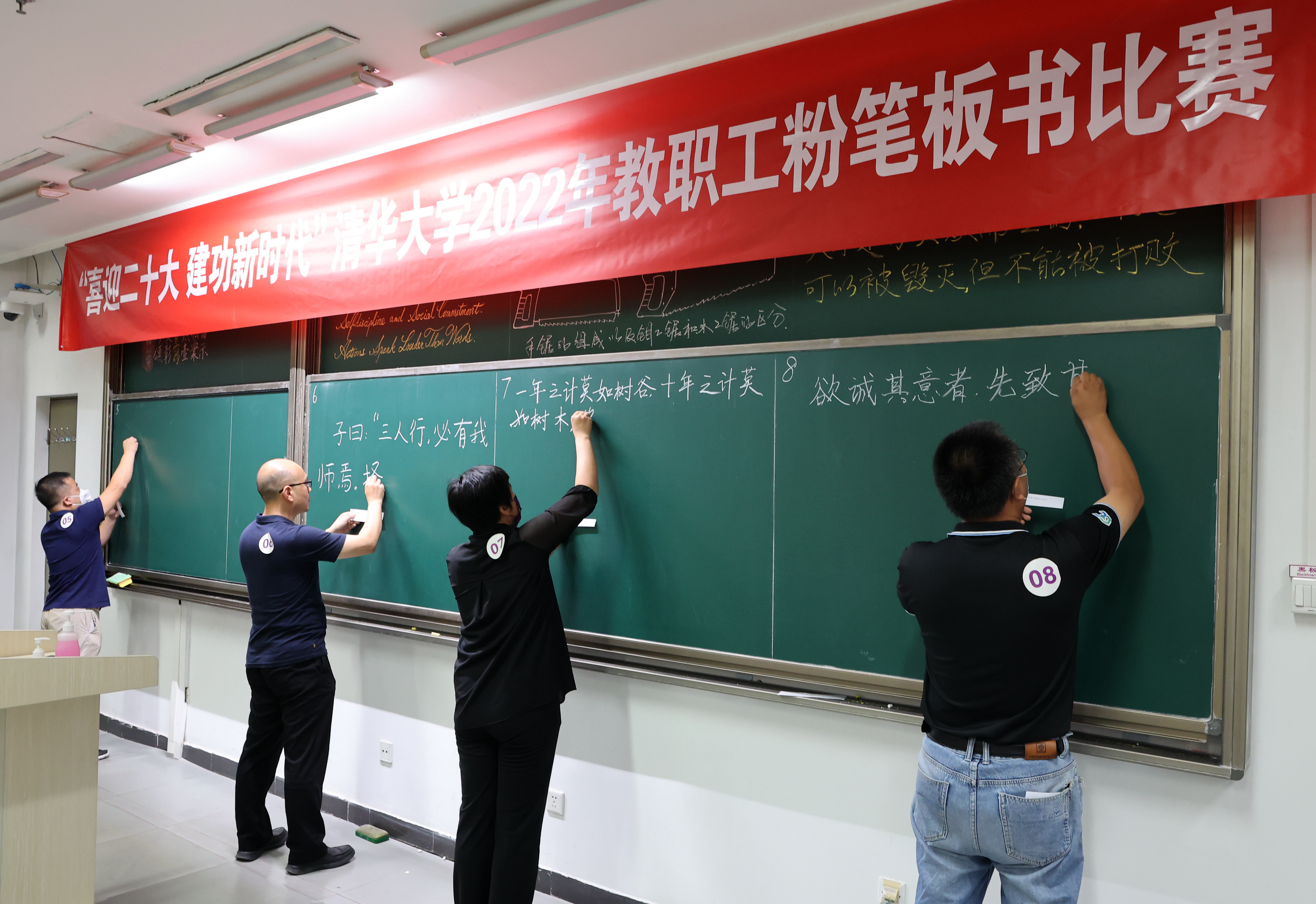 mk(中国)网9月20日电 9月15日下午,“喜迎二十大 建功新时代”mk手机注册2022年教职工粉笔板书比赛在六教举行。校工会主席王岩,校工会书法协会会长、mk手机注册艺术博物馆常务副馆长杜鹏飞等参加活动。