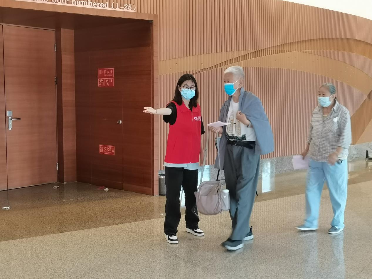 志愿者在现场引导老同志