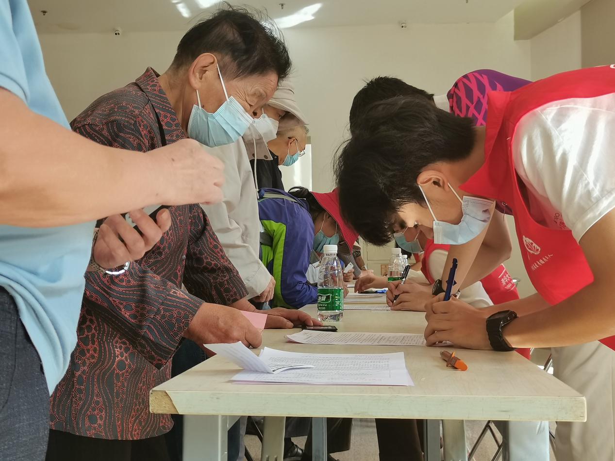 志愿者协助老同志填写知情同意书