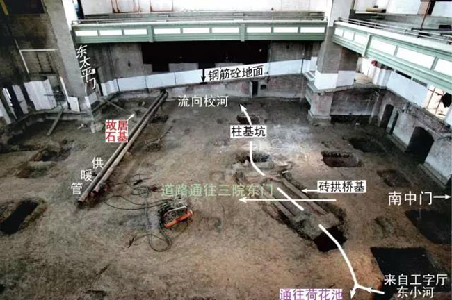特别提醒小伙伴们注意,在百年校庆翻修大礼堂之际,就在礼堂下方发现了”松鹤山房” 的基址,并且还罩了玻璃保护。再去大礼堂看电影别忘了去沾沾文气。