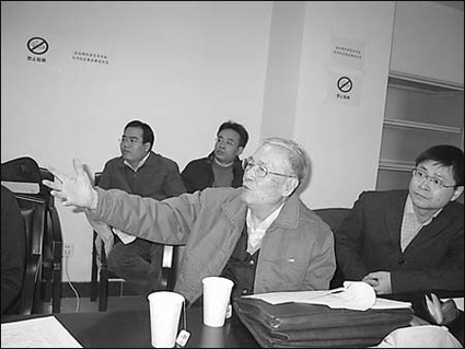 2005年,叶笃正在与同事们研讨学术问题。