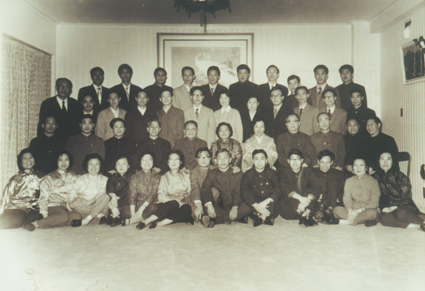 图为1979年邓小平访美期间接见首批中国赴美留学生。