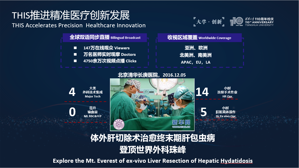 2016年,应美国外科学会和欧洲外科学会主席的邀请,董家鸿主刀并全程14小时不间断直播了体外肝切除这一最高难度的肝脏手术。在智慧科技的支撑下,实现了最大化病灶清除、最优化肝脏保护和最小化损伤侵袭的精准外科目标,向世界展示了我国领先的外科技术。