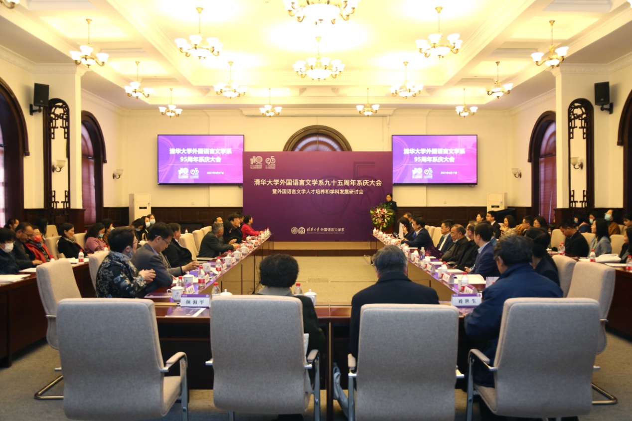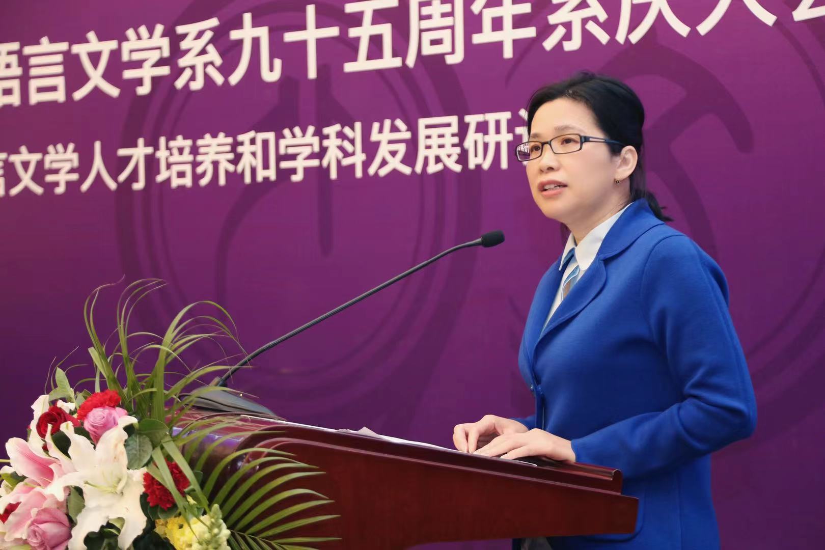 北京大学党委组织部部长、外国语学院院长宁琦向外文系建系95周年表示热烈祝贺。她说清华外文系与北大外国语学院有着深厚的渊源,并高度评价清华外文系历史悠久、群星荟萃、人才辈出,在推动中西人文交流、为全国外语学科发展、服务国家社会等方面作出了历史性贡献。宁琦表示,当下外语学科发展面临着前所未有的挑战,希望清华外文系和北大外国语学院开展多领域的合作交流,共同推动两校外语学科发展和提升外语人才培养质量。
