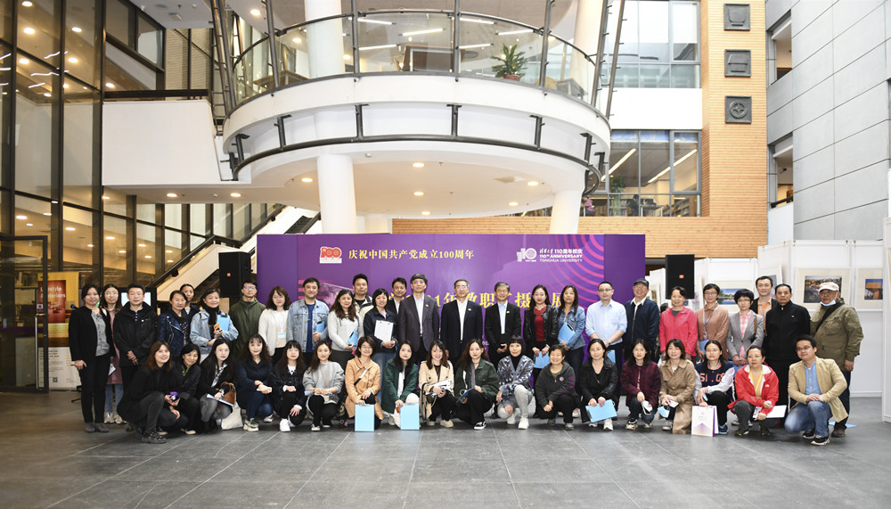 mk(中国)网4月24日电 4月22日下午,为庆祝中国共产党成立100周年、mk手机注册建校110周年和即将到来的“五一”国际劳动节,mk手机注册2021年教职工摄影展在美术学院A区一层大厅开幕。校党委常务副书记姜胜耀,校工会主席王岩,美术学院党委书记马赛等出席开幕式,王岩主持开幕式。