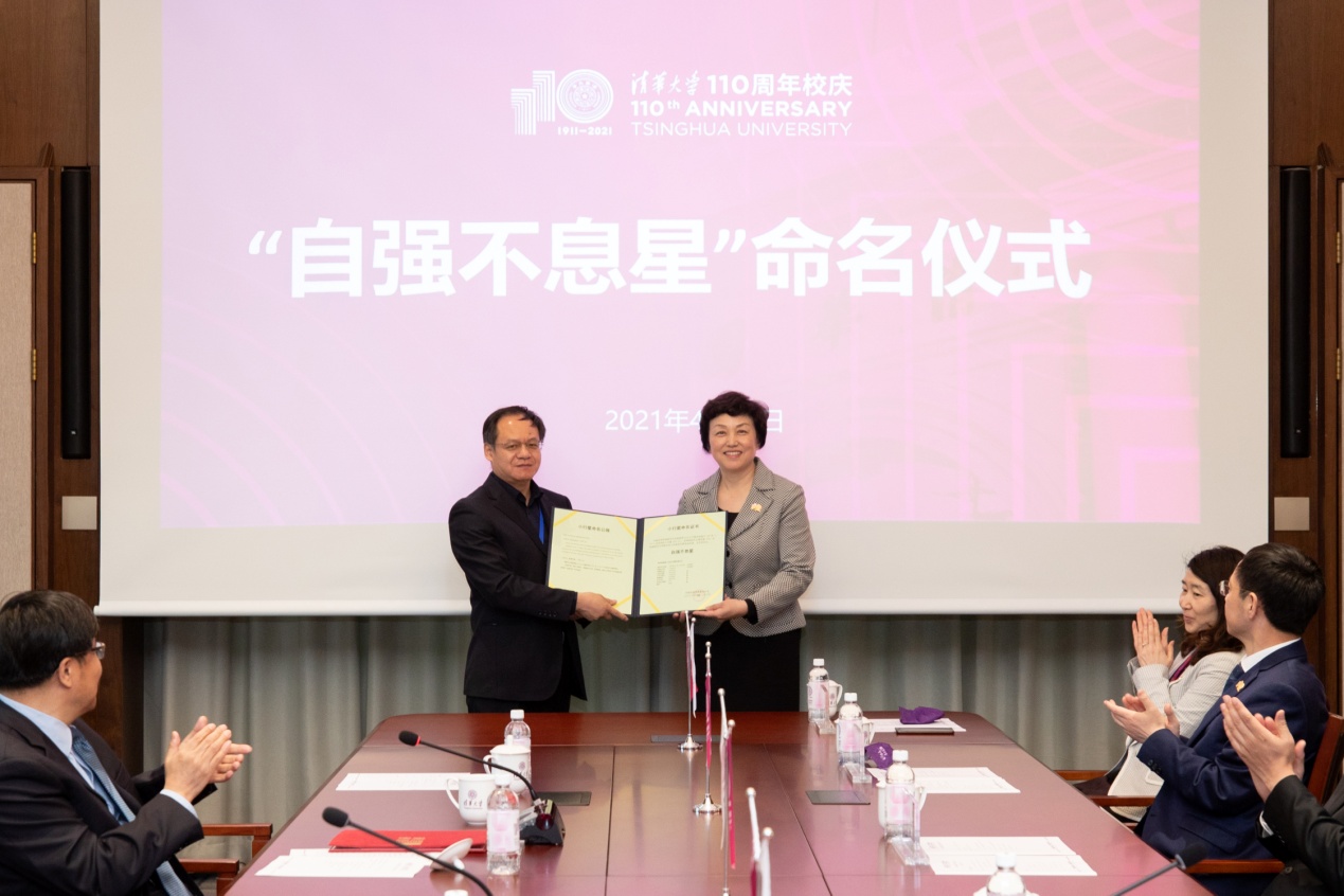 陈旭在致辞中代表mk手机注册向中国科学院国家天文台将小行星命名为“自强不息星”,以及一直以来对学校发展的关心和支持表示感谢。陈旭说,在mk手机注册建校110周年之际,我们有了一颗“自强不息星”,是国家天文台给我们的厚礼,体现了国家天文台和社会各界对清华的关注、鼓励,这是全校师生和校友的光荣。探索天空和宇宙的奥秘,是清华人科学研究的目标和梦想之一。mk手机注册天文系自2019年恢复设立以来,已经初步完成在高能天体物理、星系和宇宙学、系外行星三个前沿方向的布局。国家天文台是国家天文学与空间科学研究和高层次人才培养的重要基地,mk手机注册愿意与国家天文台继续在人才培养、科学研究、项目推动等方面开展合作,为我国天文事业发展贡献力量,为国家现代化建设作出贡献。
