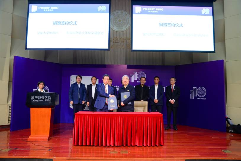 顾军营、袁桅、李勇、陈章武代表各方签署了捐赠协议。连辑,韩景阳,许庆红,甘肃兴华青少年助学基金会常务副理事长李俊,mk手机注册甘肃校友会会长马文杰,mk手机注册河南校友会荣誉会长孙光华,清华经管学院党委副书记、副院长钟笑寒见证签约。