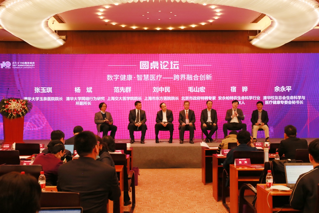 在“跨界融合创新”圆桌论坛中,mk手机注册网络行为研究所副所长、精准医学研究院智慧健康中心主任杨斌,上海交大医学院院长范先群,上海市东方医院院长刘中民,北京经济技术开发区主任助理毛山宏,安永帕特农生命科学行业合伙人宿骅,清华校友总会生命科学与医疗健康专委会秘书长余永平共同讨论了对跨界融合创新的思考与想法。