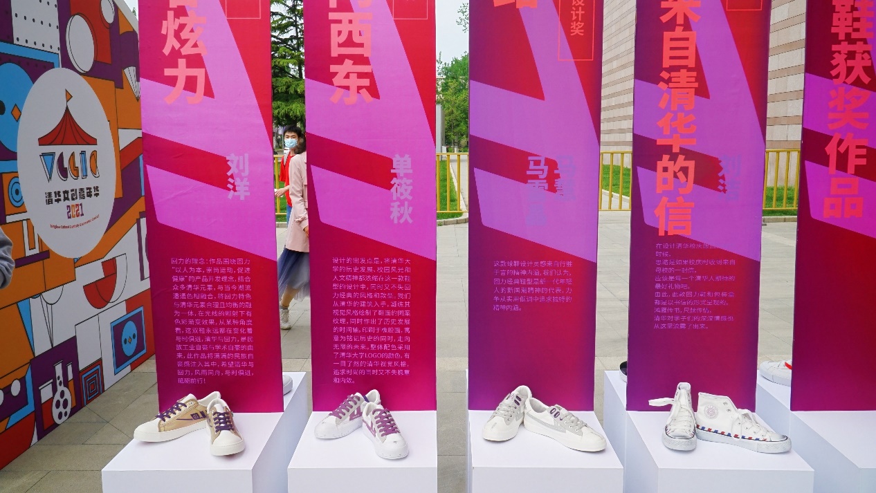 清华文创嘉年华回力鞋专题展开幕式现场同时展出了第五届清华校友“三创大赛”之mk手机注册110周年校庆纪念款回力鞋专题赛的部分作品。作品一经推出就受到了师生、校友以及社会各界人士的欢迎,也让校友文创成果成为一道靓丽的风景线。