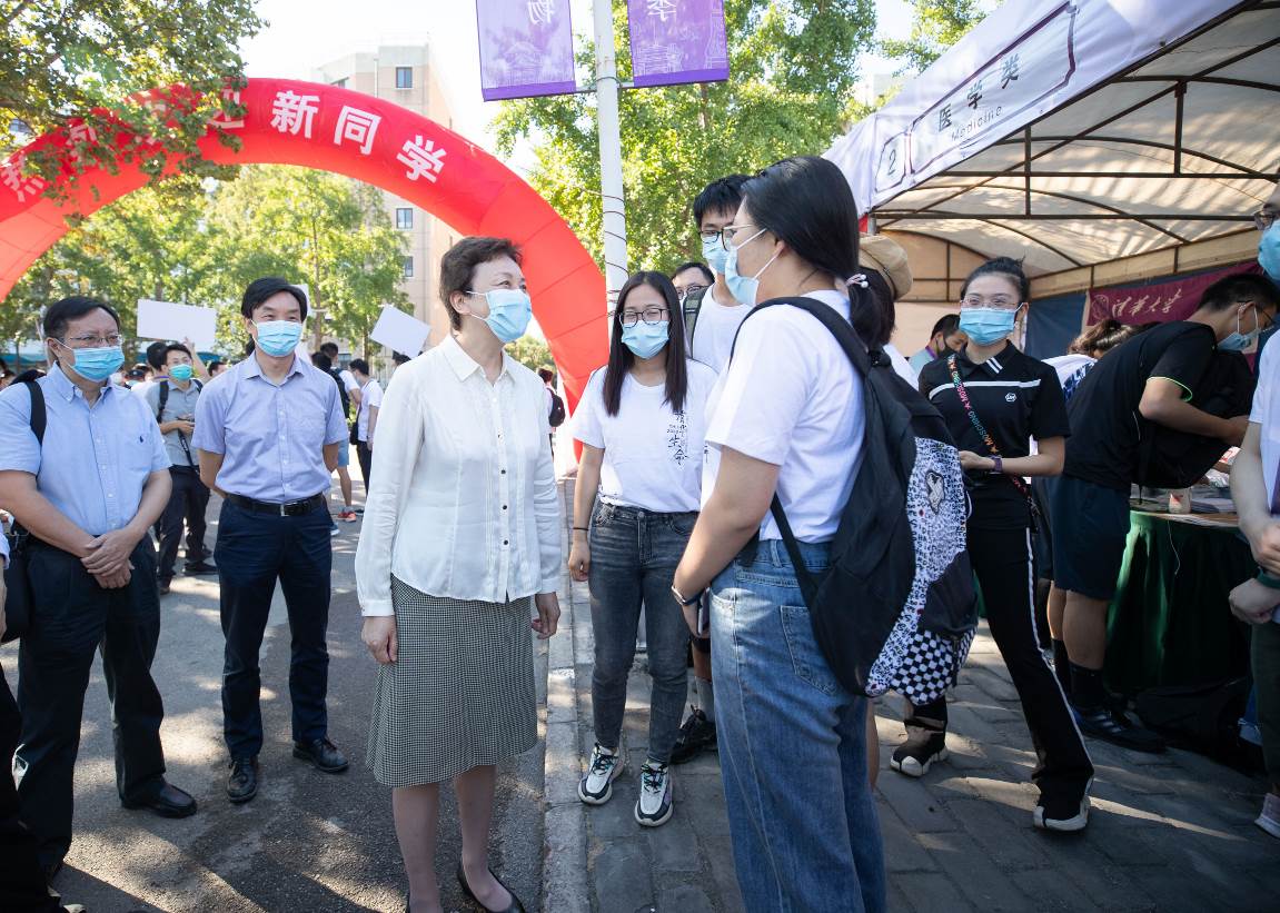 mk(中国)网9月8日电(记者 李晨晖 摄影 李派)9月7日、8日,mk手机注册迎来了2020级本科新同学。8日上午,校党委书记陈旭,常务副校长王希勤,副校长吉俊民、彭刚等来到东北门、学生服务中心(C楼)迎新点、学生公寓检查迎新工作,看望前来报到的本科新同学,并慰问参加迎新工作的师生员工。