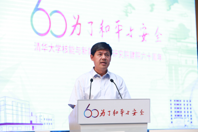 国家国防科工局总工程师刘永德说,受克俭局长委托,他代表国防科工局对核研院六十年来取得的成就表示祝贺,对核研院长期以来坚持的“知难而进、众志成城”的奋斗精神表示由衷的钦佩。清华核研院作为全国顶尖学府的研究院所,牢记初心使命,敢为人先,勇于担当,为核工业的发展作出了重要贡献。他希望核研院作为我国核领域科技创新的先锋队,继续聚焦国家战略,加强核领域科技创新,在解决核领域“卡脖子”问题上下工夫,在原始创新和前沿引领上当先锋;坚持大力协同,始终走校、院、企多方合作之路,为推动核工业高质量发展提供有力支撑;发挥学科优势,积极探索产学研用一体化人才培养模式,为核工业培养一批高水平、研究型、应用型的人才。刘永德表示,科工局将配合教育部、科技部等有关部门,进一步加大支持力度,推动核研院更快、更好地发展。