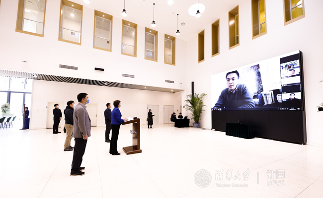 随后,陈旭来到位于法律图书馆地下一层的教学指挥中心。大屏幕上,实时滚动着正在进行线上教学的课堂情况。陈旭对线上如期开课第一日教学平稳有序、师生精神饱满表示肯定,对老师们富有创造力和展现力的课堂教学表示称赞,期待清华师生以高质量的在线教学交出一份经得起历史检验的答卷。
