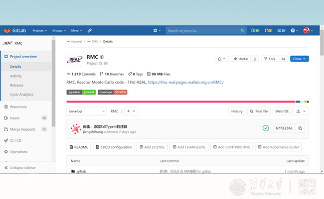 为了保证同学们实验顺利,平台上集成和配置了较为完善的自动测试服务,兼容实验所需要的反应堆蒙卡分析软件RMC功能。此外,REAL实验室同学可以通过平台互相讨论研究进展、审核程序研发内容,完成研究工作的高效快速的“peer review”。