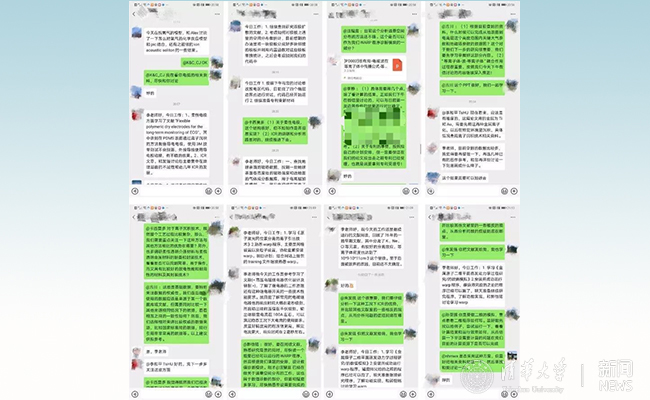 每晚8点,师生们在工作群内进行工作汇报和学术交流,老师还会根据每位同学的进展进行具体的指导和讨论。虽然研究组成员们通过网络空间进行学术交流,但是大家各司其职、分工协作,营造了良好的科研氛围。