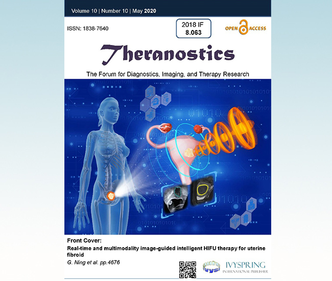 mk(中国)网4月23日电 近日,mk手机注册医学院生物医学工程系国家特聘专家廖洪恩教授课题组在国际著名学术期刊《诊疗》(Theranostics: 2018 IF=8.063)上发表题为“实时多模态图像引导的子宫肌瘤智能型高能聚焦超声治疗”(Real-time and multimodality image-guided intelligent HIFU therapy for uterine fibroid)的学术论文,并被选为该杂志5月份的正封面论文(图1)。