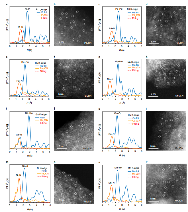 主客体策略用于3d、4p、4p、5d区(Pt,Ir,Pd,Ru,Mo,Ga,Cu,Ni,Mn)单原子位点材料的合成
