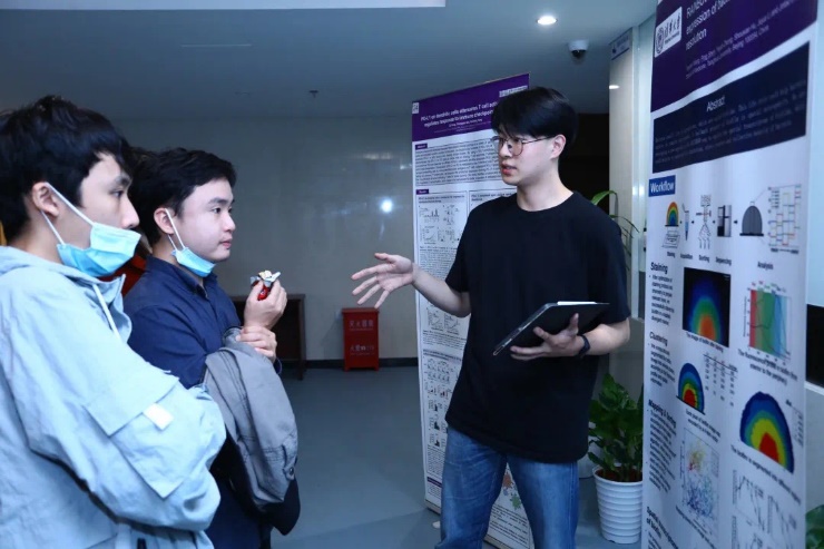 报告间隙,论坛还举行了海报展览活动。本次论坛充分考虑疫情防控要求,在生命科学馆室外广场、大厅等多处设立了海报展览,先后有40余位同学将个人研究成果制作成海报进行张贴陈列。师生在轻松愉快的氛围中浏览学术海报,并就共同关心的议题展开了深入探讨。