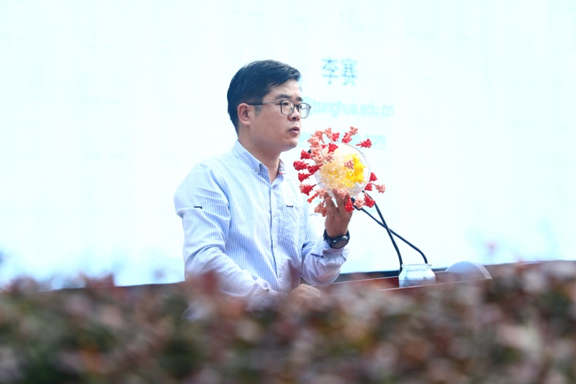 论坛中,报告人结合各自专业方向分享最新研究成果,研讨如何为常态化疫情防控贡献清华智慧。生命学院2018级博士生宋雨桐和2017级博士生徐家璐介绍了新冠病毒的结构全貌。宋雨桐讲解了新冠病毒的刺突三聚体、膜蛋白、包膜蛋白等结构特征。徐家璐向听众展示了新冠病毒内部的断层扫描切片与高分辨率核糖核蛋白(RNP)结构,并进一步阐释了上述结构如何影响病毒组装过程。生命学院2017级博士生李籍舟介绍了SARS-Cov2临床样本全基因组测序工作,该方法不仅突破了大规模临床病毒样本深度测序的难点,还大大降低了检测成本和检测时间,在流行病学追踪、分析病毒变异规律等多个场景上都具有广阔的应用前景。生命学院2016级博士生李则尧进一步介绍了通过hmmNAGC技术鉴定人群中与癌症相关的非等位基因转化的系列工作。