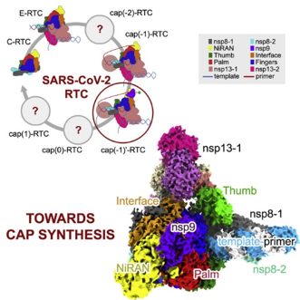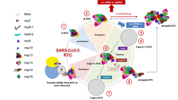 该成果揭示了新冠病毒转录复制机器的完整组成形式,明确了病毒mRNA加帽的分子机制,提出了新冠病毒逃逸核苷类药物的机制,发现了新的抑制剂作用靶点,为发展和优化抗病毒药物提供了关键的结构基础。