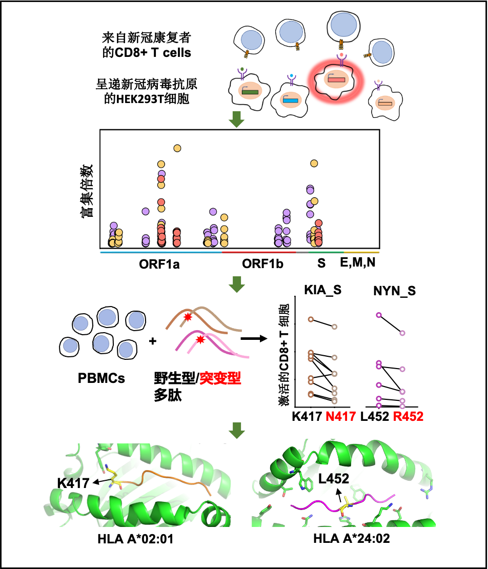 近日,研究团队在国际一流期刊《细胞报道》(Cell Reports)上发表了题为“鉴定新冠康复者的细胞免疫表位发现新冠病毒变种的细胞免疫减弱的现象”(Profiling CD8+ T Cell Epitopes of COVID-19 Convalescents Reveals Reduced Cellular Immune Responses to SARS-CoV-2 Variants)的研究论文。