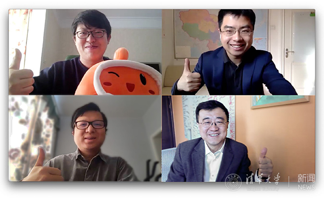 线上签约仪式:杨斌(右下)、宿华(左下)、王帅国(右上)、马宏彬(左上)