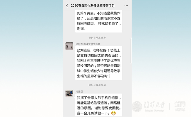2月4日晚,自动化系全体任课教师参加了学校的雨课堂培训,研究不同直播方式的效果,讨论着如何更好地与学生互动,琢磨着可行的网络教学备用方案。夜深了,老师们还在进行着雨课堂测试。
