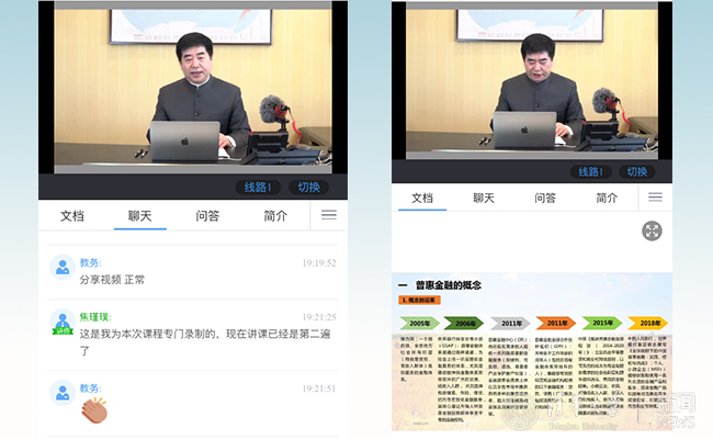 播放视频时,焦瑾璞和同学们线上互动