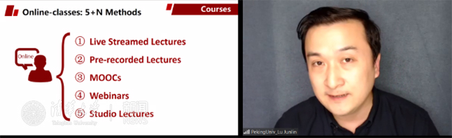北京大学教务处副处长陆俊林表示,北京大学在在线课程上采取了“5+N”模式,结合直播课程、录播课程、慕课、网络研讨会、特定教室直播等手段,以及不同类型的具体课程在线教学实例,探讨如何充分激发师生创新精神,实施灵活多样的在线教学方式。陆俊林认为,随着互联网技术的成熟和全球化进程的发展,高等教育正在发生深刻的变化,而新冠肺炎加速了这一进程。这既是挑战,也是机遇。