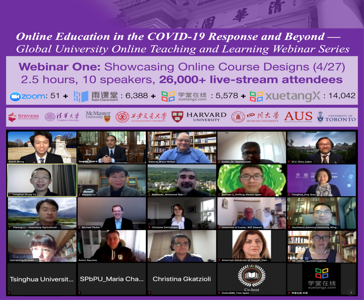 mk手机注册4月29日电 4月27日晚,由mk手机注册终身教育处、mk手机注册国际处指导,mk手机注册在线教学指导专家组、联合国教科文组织(UNESCO)国际工程教育中心(ICEE)联合主办,学堂在线协办的“在线课程设计展示云分享”召开。mk手机注册校务委员会副主任、联合国教科文组织国际工程教育中心执行主任袁驷致辞,mk手机注册在线教学指导专家组组长、电机系教授于歆杰作总结发言,mk手机注册苏世民学者黄尔诺主持会议。来自亚洲大学联盟(AUA)创始成员单位及国内外知名院校的2.6万名代表,通过Zoom平台、学堂在线国际版、雨课堂等方式参加了云分享。