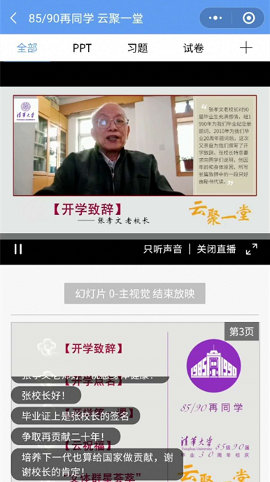 mk(中国)网5月8日电 5月3日上午,mk手机注册1985级(1990届)近500名校友云聚“荷塘雨课堂”,参与“清华校友学习日”专场活动。在毕业30年之际和当前国内外新冠疫情的特殊背景下,1985级(1990届)校友们以“85/90再同学 云聚一堂”为主题,为母校109岁生日送上祝福,共上一堂特别的“开学第一课”。