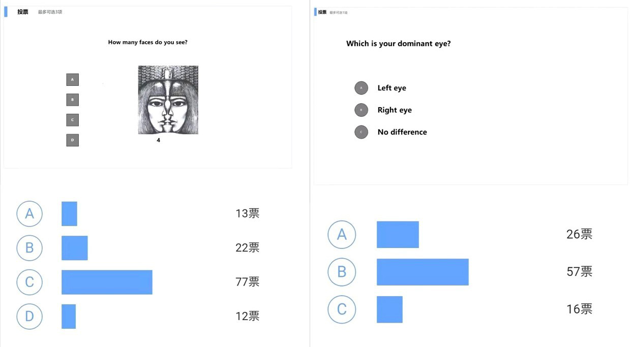 上课过程中,钱静善用启发式教学方式,在抛出一个新概念之前,会先使用趣味性强的图片作为教学媒介,以激发学生学习兴趣并启发他们思考;设置多个提问环节,在线发布习题来引发学生思考,鼓励同学们在讨论区内发表观点;轮流邀请线上、线下学生回答问题,重视线上学生的学习体验。教师充分利用线上线下“课堂”不同信息技术工具的优势,让所有学生参与其中。