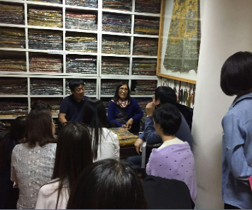 同学们考察历史文物资料并与专家座谈