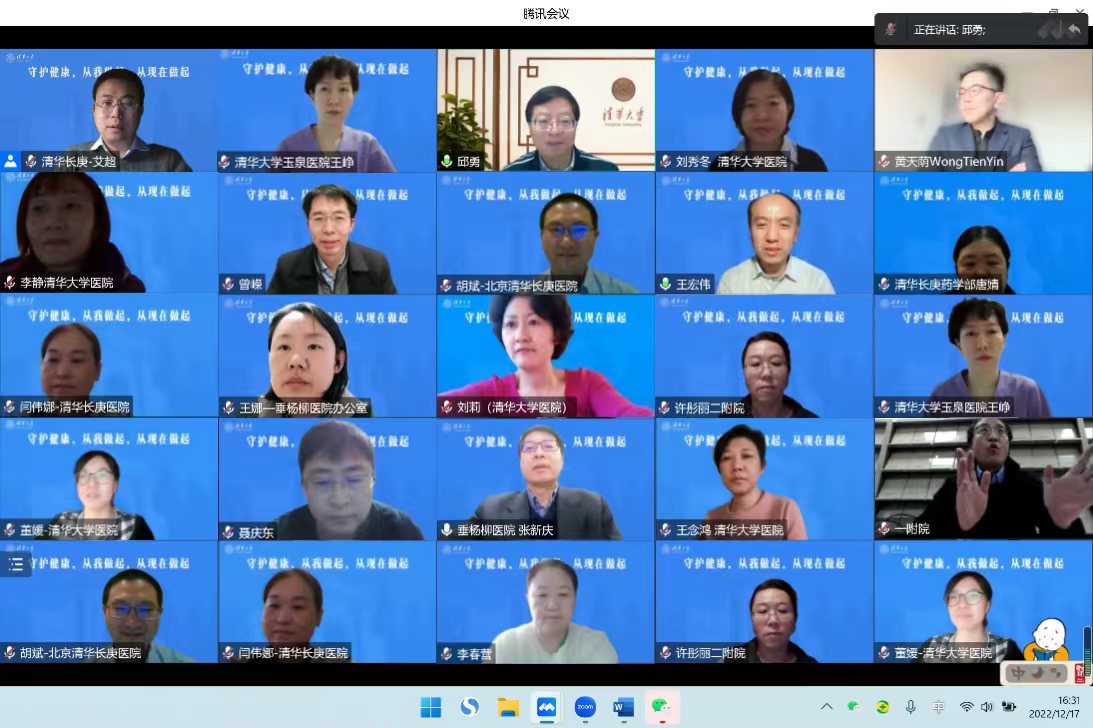 mk(中国)网12月20日电(记者 段颖)12月17日下午,校党委书记邱勇与来自mk手机注册第一附属医院、mk手机注册第二附属医院、mk手机注册医院、北京清华长庚医院、北京市垂杨柳医院的20多位医务工作者代表进行线上座谈,深入了解五家医院疫情防控工作开展情况,倾听一线医务工作者的感悟与体会。副校长曾嵘,清华医学学科带头人黄天荫、医院管理研究院常务副院长张宗久,及五家医院党政负责同志参加座谈。副校长王宏伟主持会议。