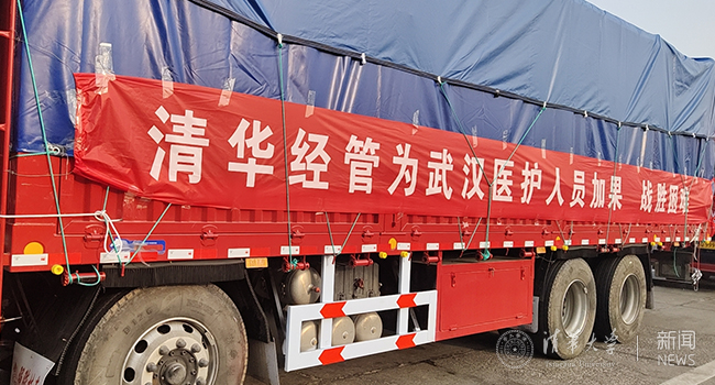 2月3日,挂着“清华经管为武汉医护人员加果,战胜困难!”“同心同德助逆行勇士奋进,相信未来”条幅的货车,满载清华经管EMBA19级未来科技班全班同学向武汉一线医护人员捐赠的水果和饮料,飞驰在高速上。