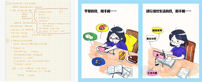 经博19党支部成员参与线上组织生活的笔记与漫画