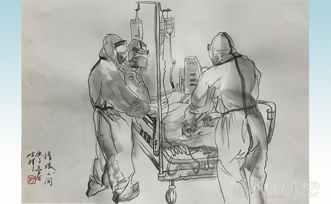 尽管假期只能线上交流,美术学院教授陈辉仍时时刻刻用画作鼓励同学们。课题组2017级硕士生陈博贤说:“导师会亲身创作疫情防控主题绘画并在群里分享给我们,这对于我们来说是重要的学习过程。在老师的鼓励下,我们也纷纷在微信群中分享作品,共同为武汉加油!”