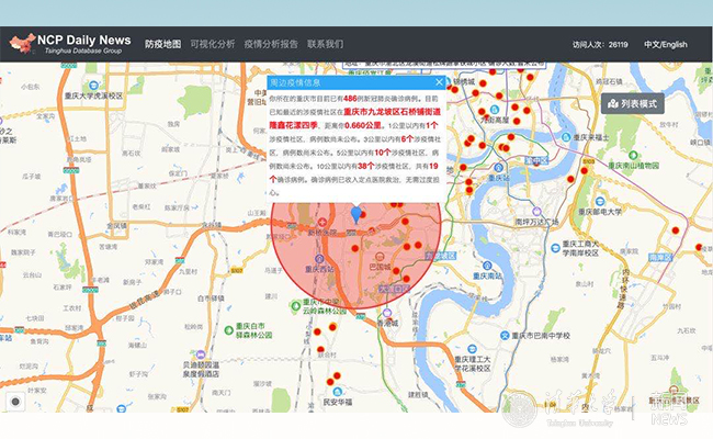 计算机系教授李国良课题组则用实际行动践行“程序报国”的初心。课题组2018级硕士生骆昱宇表示,起初自己看到身边的家人朋友都很关注疫情发展,因此萌生了将可视化知识学以致用,通过疫情地图等工具让普通民众及时了解疫情变化的想法。但在自己因数据获取和清洗等难题而打退堂鼓的时候,李老师的一番话激励了大家:“现在各行各业都在为打败疫情做力所能及的事情,我们数据库组有数据分析的能力,这个事情我们必须得做,并且还必须好好地做。”在李国良课题组的努力下,平台顺利上线,发布当晚就获得上万的访问量。其中,由计算机系2017级博士生赵天宇搭建的疫情小区查询模块很受欢迎,师生群众利用该模块可迅速了解和预测身边的疫情态势。卡内基梅隆大学的团队还专程向李国良课题组提出,希望基于平台数据开展新型冠状病毒的流行病学研究。