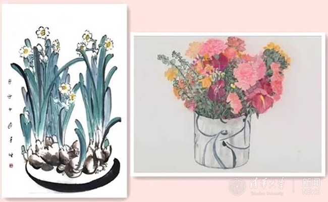 刘巨德《花开寒冬》(左)、杜大恺《富贵平安》局部(右)