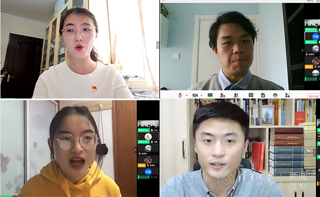 盛晴、李燃分别介绍了自己作为班主任在疫情期间关心关爱学生,让学生感受集体的温暖,增强战胜疫情信心的做法,分享了自己在抗“疫”斗争中的思考和实践。王娜、车宗凯两位同学则结合自己的专业学习和在疫情期间的所见所学所思分享了自己的思考点滴。车宗凯谈到,这次疫情让“90后”见证了众志成城的“力”,党员先锋的“范”,中国精神的“情”,生动的社会大课堂深化了青年学生用马克思主义理论指导自身学习的信念和自觉。王娜发言时说,抗“疫”期间看到了许许多多的感人事迹,涌现了许许多多令人钦佩的共产党员,让人想起《毛泽东选集》中的一段话:“(中国共产党的)干部和领袖懂得马克思列宁主义,有政治远见,有工作能力,富于牺牲精神,能独立解决问题,在困难中不动摇,忠心耿耿地为民族、为阶级、为党而工作。”这段时间,共产党员投身于抗“疫”行动中,作出了很多贡献,也为我们作出了表率。