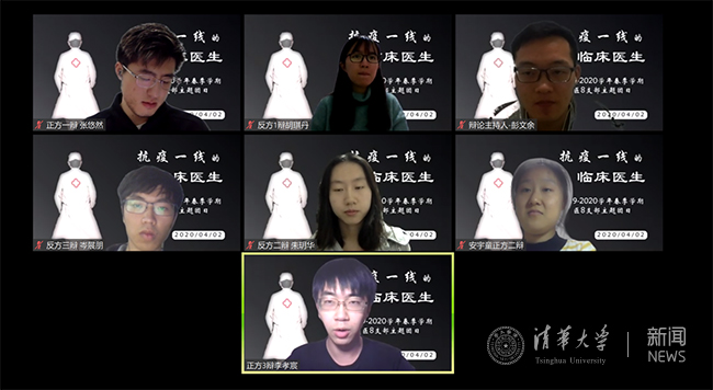 接下来,同学们借助交互式情景模拟和嘉宾访谈等形式,直观感受了防疫一线的临床工作。丁愚昔和吕嘉丽两位同学模拟了疫情期间发热患者的就诊过程,生动勾勒了特殊时期医患沟通面临的挑战,并借助雨课堂与观众互动,将知识竞答与情景剧融合起来。特邀嘉宾、北京清华长庚医院援鄂医疗队临时党支部书记郭军与同学们分享了他主动请缨的心路历程,以及在武汉抗疫一线的经历与感受,并对疫情中的医患关系作了深入解读。