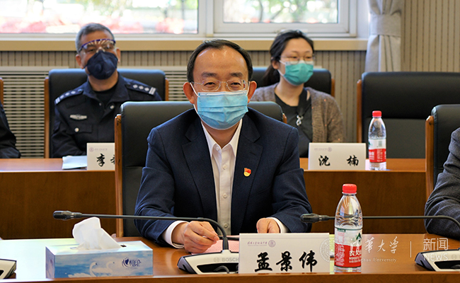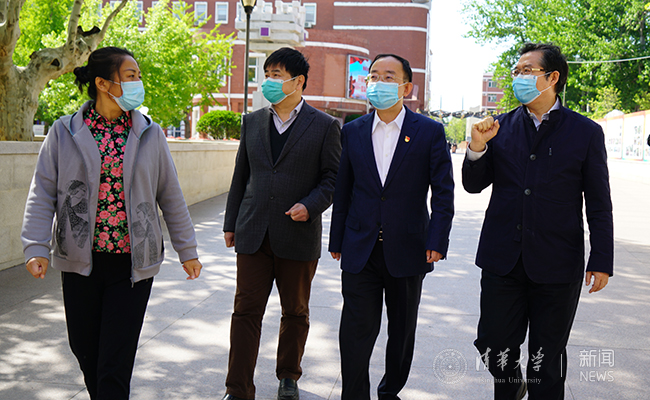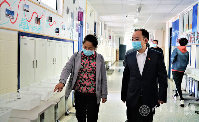 海淀区区委副书记孟景伟、清华园街道党委书记高斌在附中校长王殿军、党委书记方妍的陪同下,实地走访了附中校园,考察校园防疫设施,查看教育教学场所设置、学校医务室设置、学生用餐地点等,对附中的疫情防控工作和细致安排表示肯定。