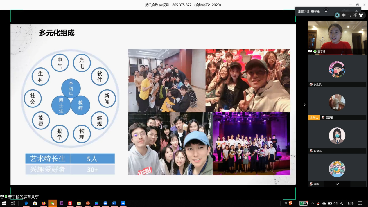 华中大话剧队指导老师刘洁介绍了华中大戏剧团的团队建设情况,戏剧团力求让所有成员都能登上舞台,同学们在排演过程中展现出良好的精神风貌。清华话剧队指导老师肖薇说,清华话剧队与华中大戏剧团,一南一北、一团一队,结下深厚友谊。因为疫情只能线上见面,希望未来有更多机会进行线下交流。