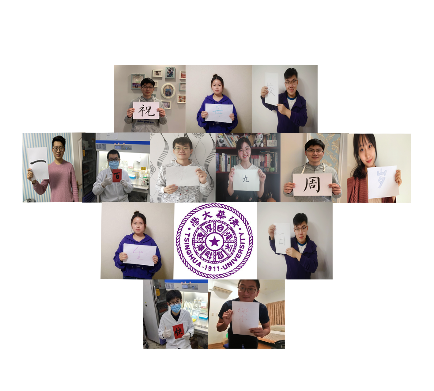 每一位清华人都会对母校有着自己别样的祝福,说不尽的千言万语,都会汇成这样的一句话:“祝母校一百零九周岁生日快乐!”