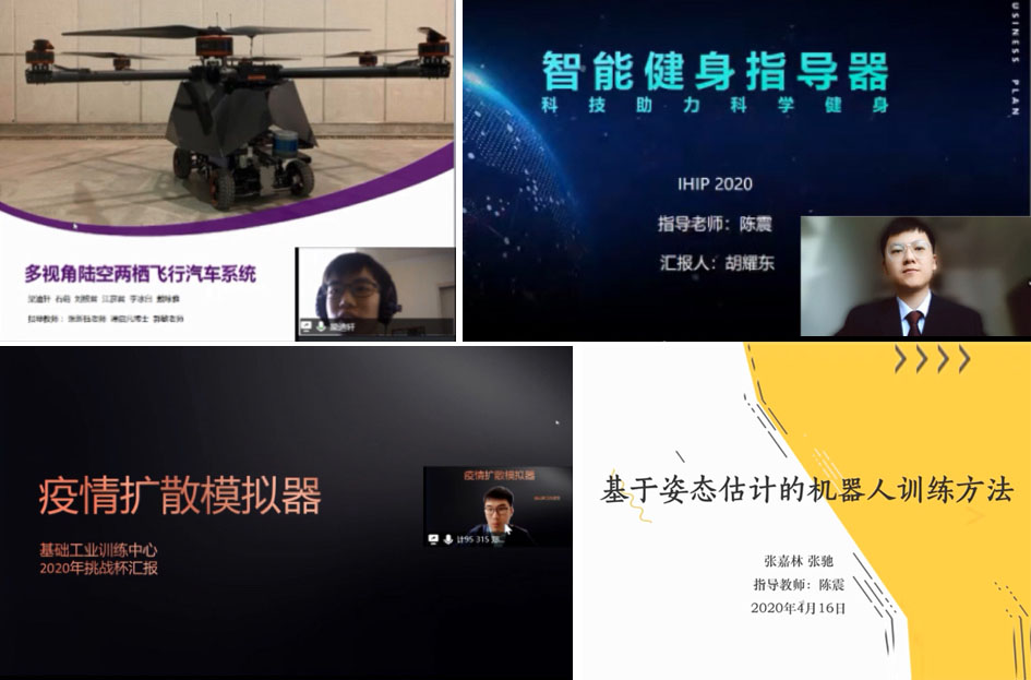 由基础工业训练中心教师参与指导的4项挑战杯大学生科技创新项目也在论坛上进行了进度汇报。汇报围绕机器人姿态控制、陆空两栖飞行汽车感知系统、疫情扩散模拟器、智能健身指导器等主题分享了最新进展,充分展示了以工程实践为基础,结合前沿技术与重大问题开展跨学科创新实践的成果。清华珠三角研究院未来能力发展研究中心工程师周军展示了智能制造实践教学平台的最新建设成果。