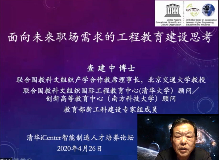 联合国教科文组织产学合作教席、北京交通大学教授査建中以“面向未来职场需求的工程人才培养”为题,结合各国高校优秀案例,介绍了如何建立面向未来企业需求的培养机制与体系,有效促进学术与产业融合,为产业发展培养适应性强的创新人才。