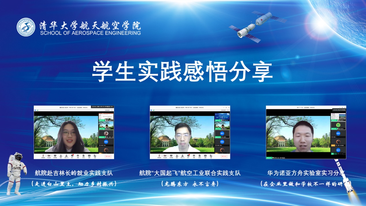 实践出真知,同学们作为实践项目的主要参与者,在实践的路上收获颇丰。2019级硕士生王翘楚在赴吉林长岭的就业实践过程中,调研扶贫产业和脱贫攻坚经验,提出参考意见,助力乡村振兴;2018级博士生刘雨恩走进航空工业重点单位,思考行业发展,体会到先辈忠诚奉献的航空精神,坚定了航空报国的理想信念;力6班黄立昊同学分享了自己在华为诺亚方舟实验室实习的收获,对在校科研与公司实习深入地进行了对比分析。三位同学分别从基层部门、航天航空单位、创新企业三个方面介绍了自己的实习实践经历及感想,为本硕博同学们实习、实践提供了优秀的范例。