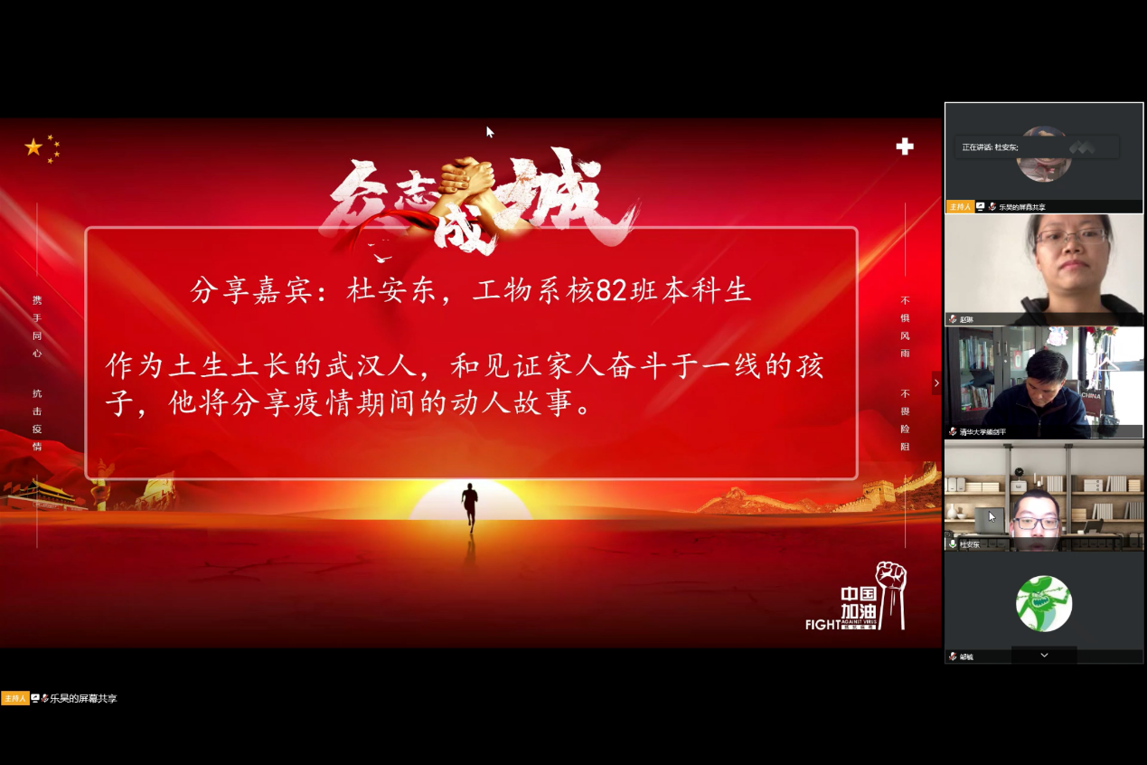 工程物理系核82班的杜安东是一名普通的武汉人。在家人不幸感染新冠肺炎的情况下,他始终保持乐观的心态,也感受到来自学校的关心和帮助。疫情期间,班主任老师为他寄去口罩,同学们也为他排忧解难。在医护人员的辛勤工作下,他的家人转危为安,生活也逐步恢复正常。看到解封的武汉,他内心充满感动,也感受到了“生命”二字沉重而幸福的含义。